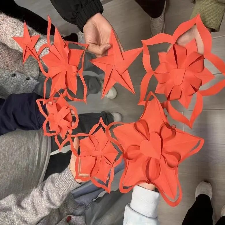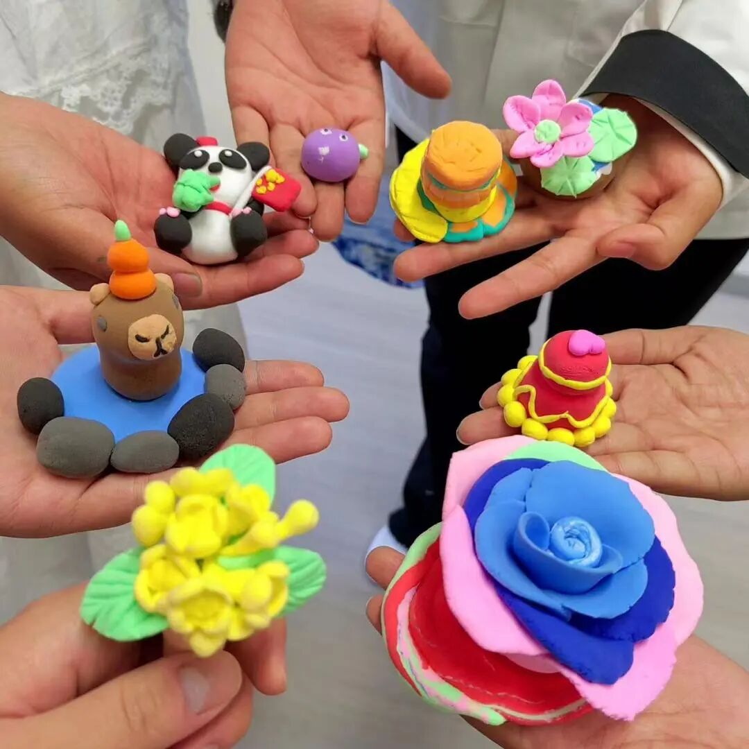 活动中,熠熠生辉的五角星、栩栩如生的黏土作品、色彩绚烂的簪花,每一份创作中都融入了同学们对祖国的热爱与祝福。