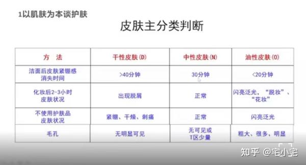 目前护肤主分类有干皮、油皮和中性皮肤之分,可以从洁面后皮肤紧绷感消失的时间来进行判断。