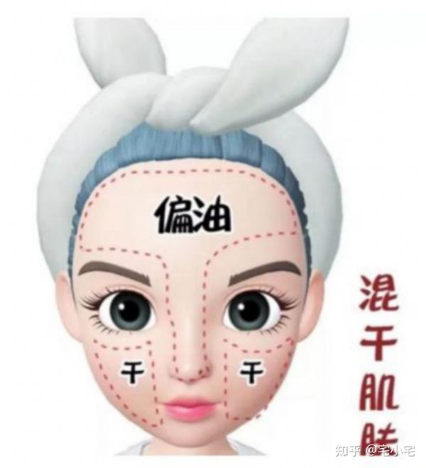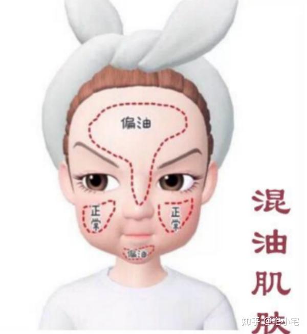 混合偏油:通常T区呈现油性皮肤, 其他部分呈中性皮肤。