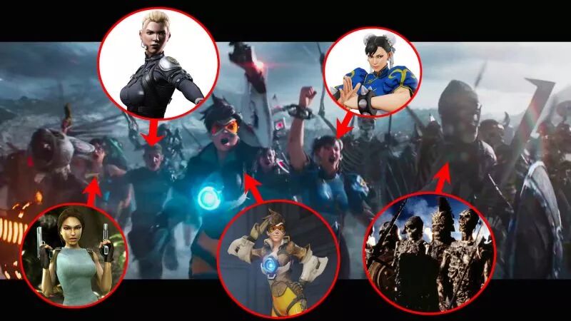 《头号玩家》里就隐藏了很多这样的Easter eggs。比如上图是最后“大决战”的桥段,人群中隐藏了《真人快打x》里的Cassie Cage、《街霸》里的春丽、《古墓丽影》里的劳拉、《鬼玩人》里的活死人军团、《守望先锋》里的猎空小姐姐。《头号玩家》号称藏有200多个彩蛋,把影史经典、Cult神作、街机游戏、怀旧美剧、老歌金曲、美日二次元文化一网打尽,几乎每个几秒就会出现一个彩蛋,这简直让死宅党们燃到爆!