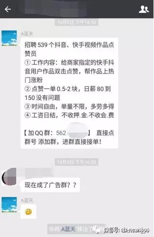 这几天,在我的一个微信群中,有个家伙发了招聘抖音、快手点赞员的广告。