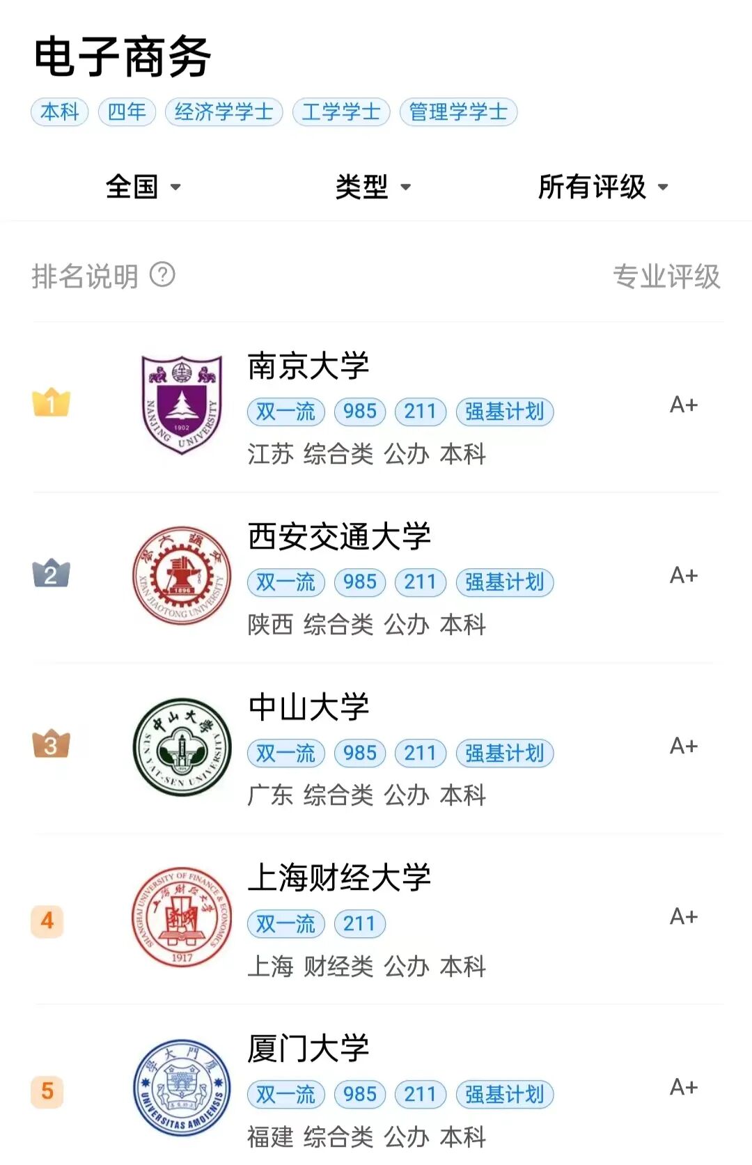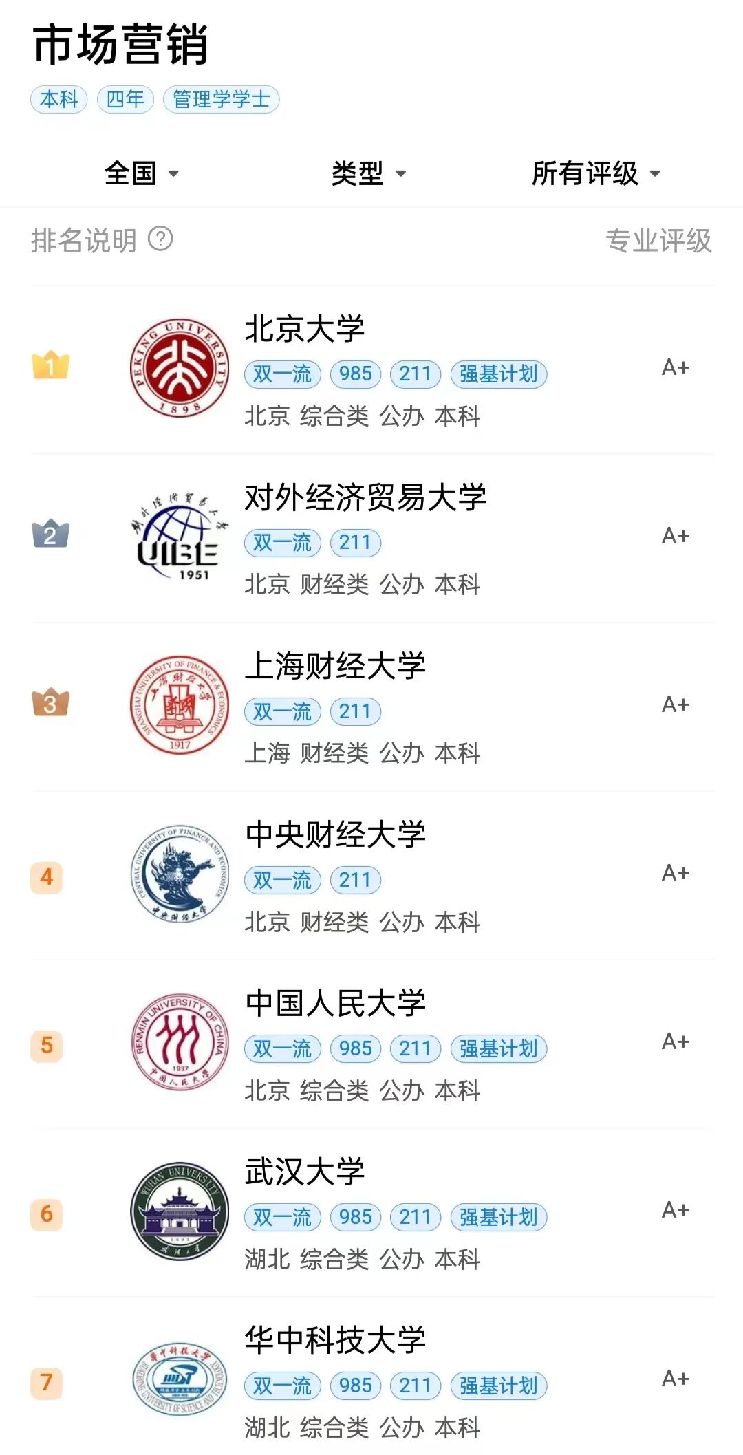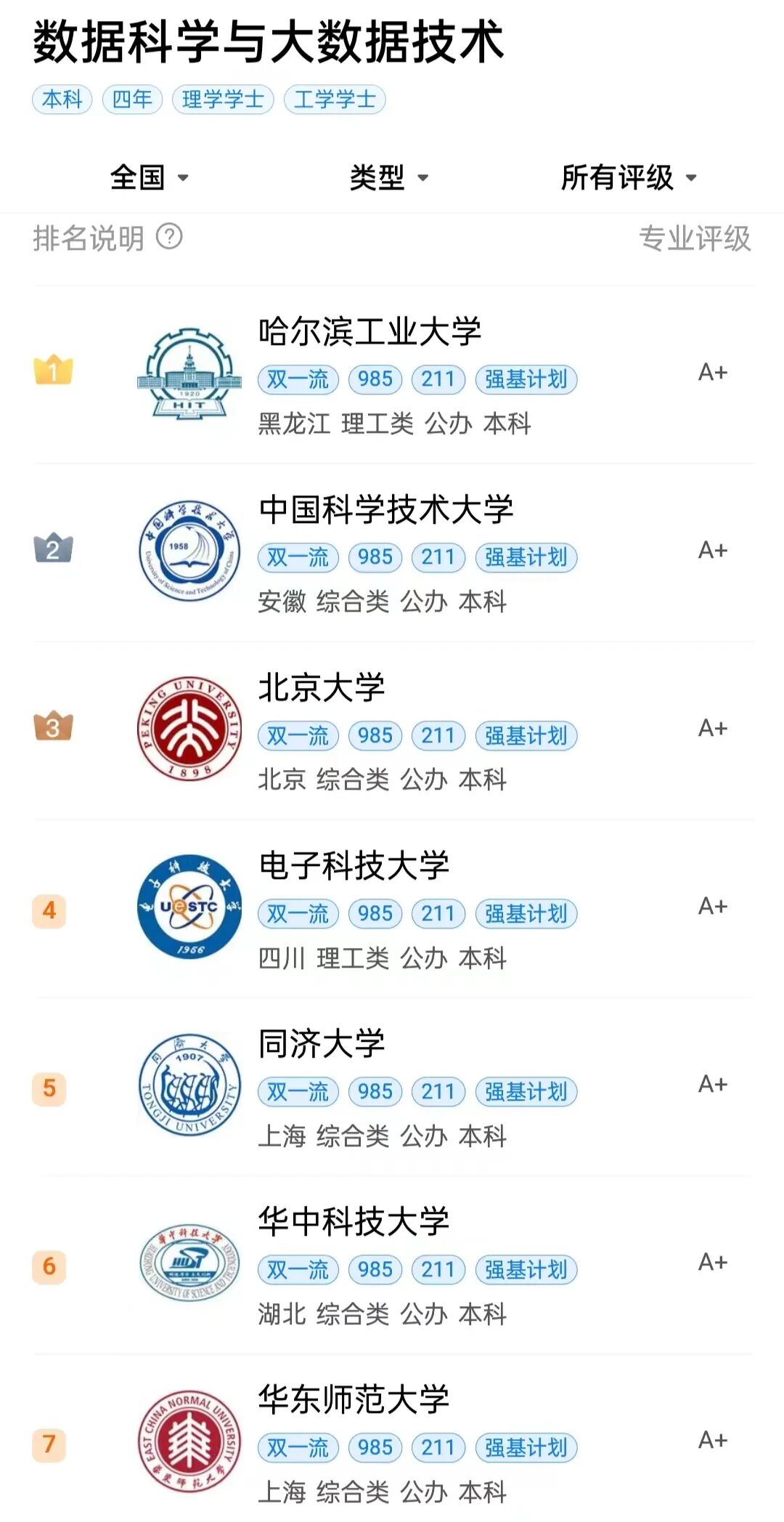 5:要了解这门专业比较厉害的大学,这个建议参考次学科评估、双一流学科建设以及其他的一些权威榜单。