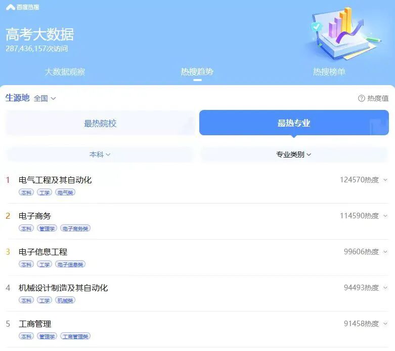 说明:热度是指将该院校/专业及其高关联度搜索关键词最近一段时间的搜索频次进行累加求和,指数化处理后得出,上图引用数据为2022年7月底。