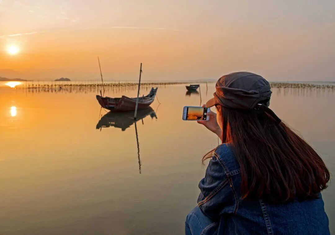 渔家风情,游船赏落日渔船