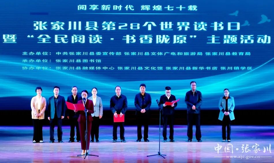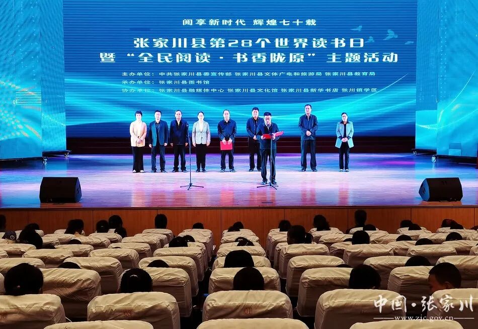 阅享新时代,辉煌七十载。为全面贯彻落实党的二十大关于深化全民阅读活动的重要部署精神,持续推动全民阅读活动深入开展,激发全民读书热情,4月19日上午,在第28个“世界读书日”来临之际,由县委宣传部、县文旅局、县教育局主办,县图书馆承办,县融媒体中心、县文化馆、新华书店、张川镇学区协办的第28个世界读书日暨“全民阅读·书香陇原”主题活动在县影视中心礼堂举办。